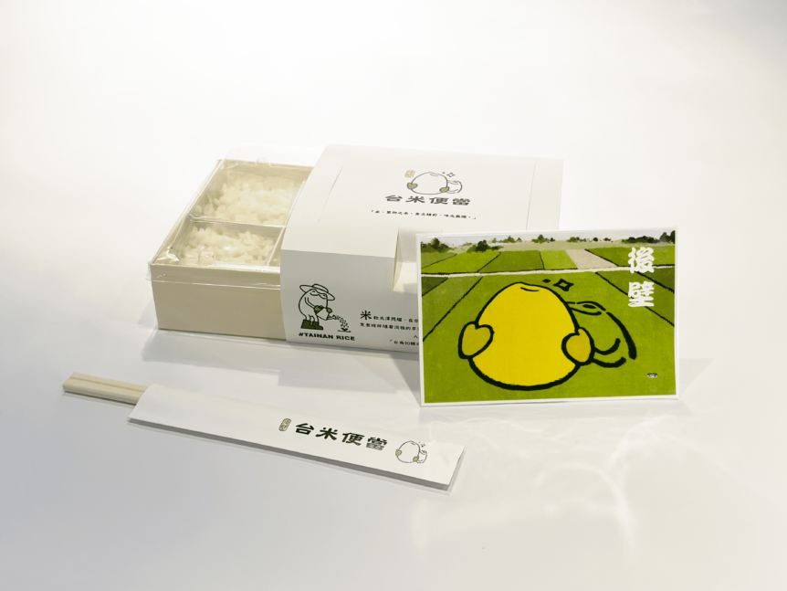 設計理念: 為推廣台南後壁區,針對年輕米食愛好者設計盲盒便當,期望顧客在食用時富有新鮮感及趣味之外,也能產生一定的話題性。便當米飯主要使用台南 20 號米,一款與 111 年新研發的新稻種為主體,希望藉由便當行銷讓人們喚起對米業的重視以及支持當地農產品,吸引顧客回流到後壁旅行。